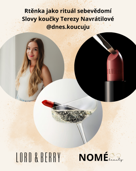 Tereza nám připomíná, že i malé každodenní rituály jako nanesení rtěnky nebo hydratace rtů jsou důležitou součástí ženské energie a vnitřní síly. Její tip? Rtěnka Bouquet od Lord & Berry a noční péče o rty Insta Lips od Sepai.